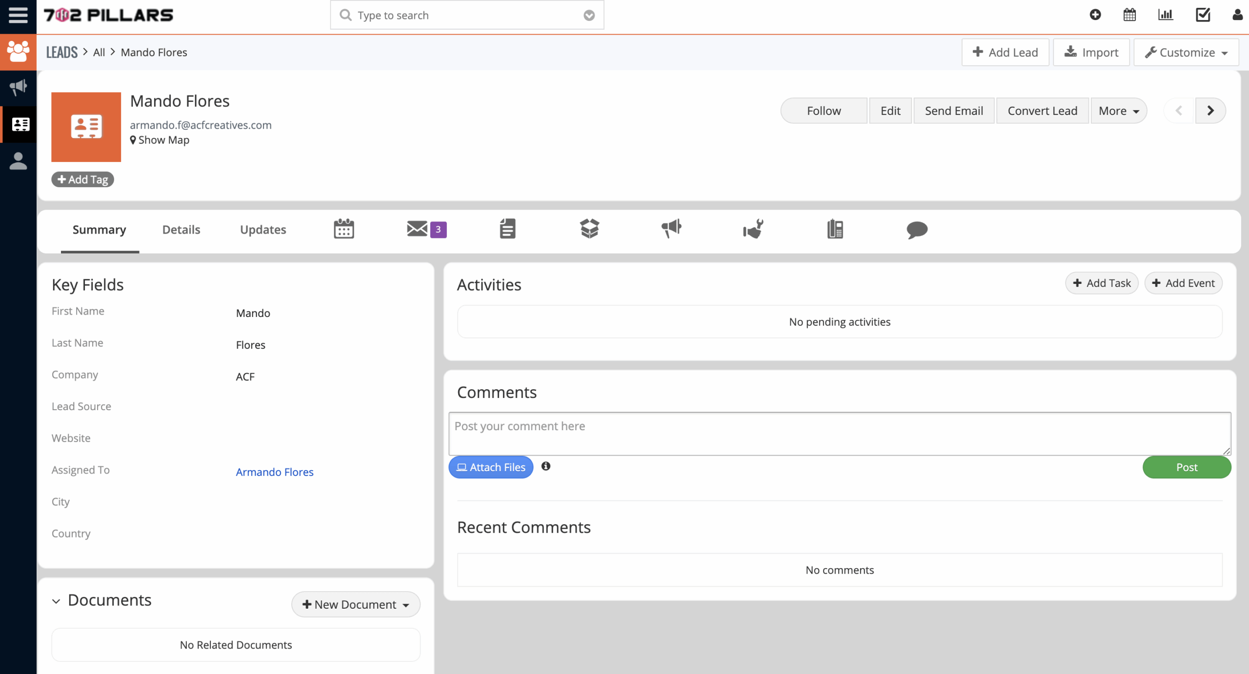 702 PILLARS were managing all of their processes with spreadsheets and folders. They wanted to get into a CRM but did not want to spend it on subscription-based software since they were a startup. They requested a CRM with leads, contacts, accounts, opportunities, invoicing, marketing, service, and inventory systems.